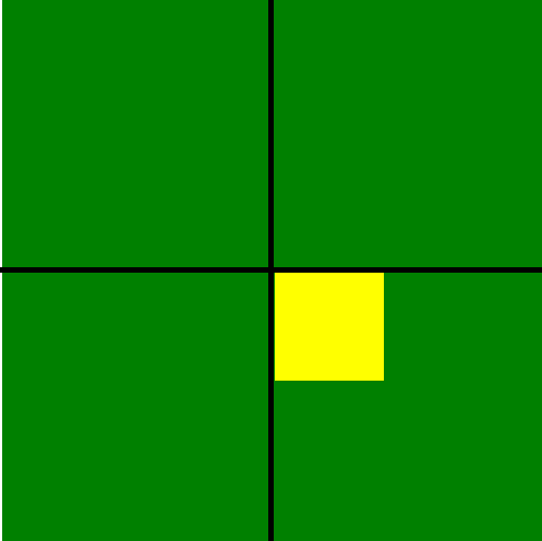 위와 같이 .child의 요소가 부모요소 기준점으로 50%씩 이동하면 다음과 같이 기준점 기준으로 중앙정렬이 되었음.