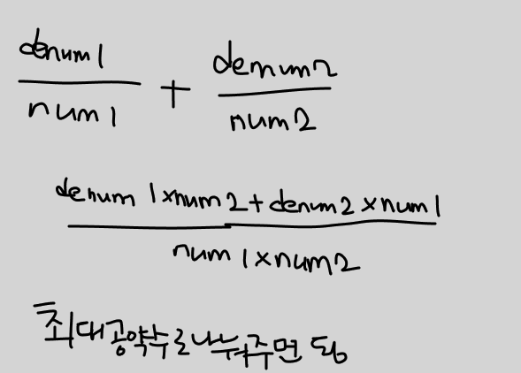 var num = denom2 *numer1 + denom1 * numer2 // 분자구하기